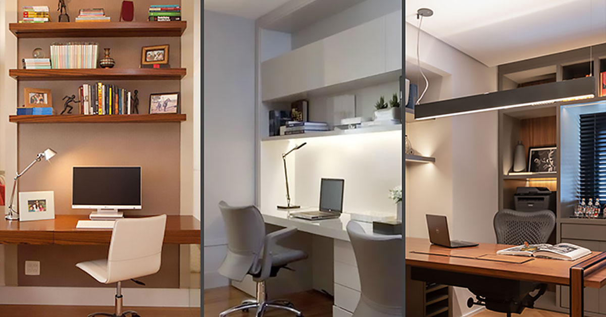 Por isso o home office deve ter uma iluminação de teto adequada e uma iluminação de mesa auxiliar, criando iluminações diferenciadas para concentração, reunião, leitura etc.